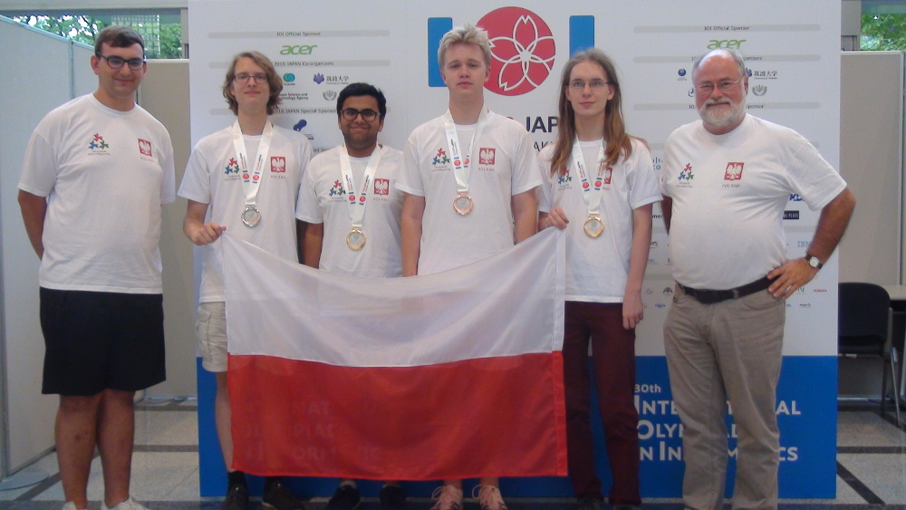Złote medale do Polski przywieźli Mariusz Trela oraz Anadi Agrawal. Dla obu jest to już drugi złoty medal Międzynarodowej Olimpiady Informatycznej. Mariusz jest absolwentem V LO w Krakowie, natomiast Anadi – XIV LO we Wrocławiu. Srebro zdobył Kacper Kluk, który ukończył III LO w Gdyni. Medal brązowy natomiast wywalczył Dawid Jamka, absolwent VI LO w Radomiu.