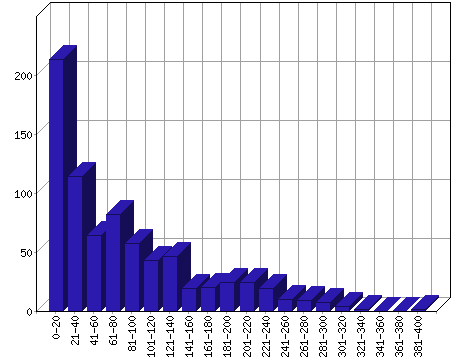 | Ilość | 213 | 114 | 64 | 82 | 57 | 43 | 46 | 19 | 20 | 24 |