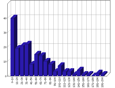 | Ilość | 40 | 19 | 21 | 22 | 8 | 15 | 14 | 10 | 8 | 3 |