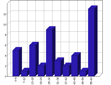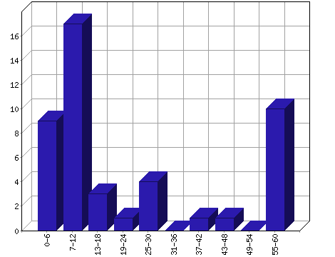 | Ilość | 40 | 3 | 0 | 0 | 0 | 0 | 0 | 1 | 1 | 1 |