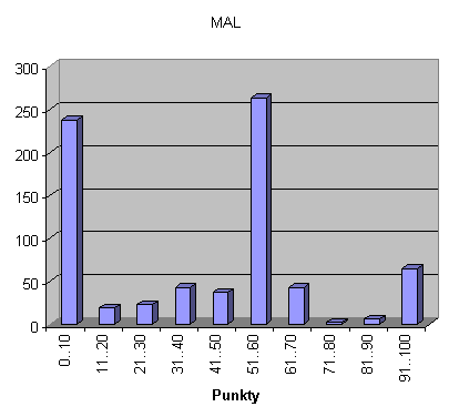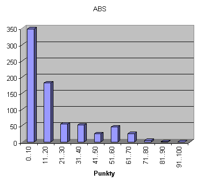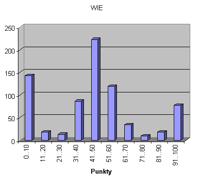 - oś y - ilość zawodników którzy uzyskali taką ilość punktów