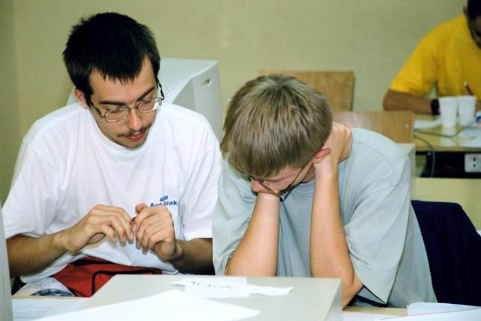 | Okazja: III oboz im. Kreczmara -> Kadra | | Opis: Przemyślenia nad zadaniem | | Autor: Tomasz Waleń | | Osoby na zdjęciu: Krzysztof Diks, Piotr Sankowski |